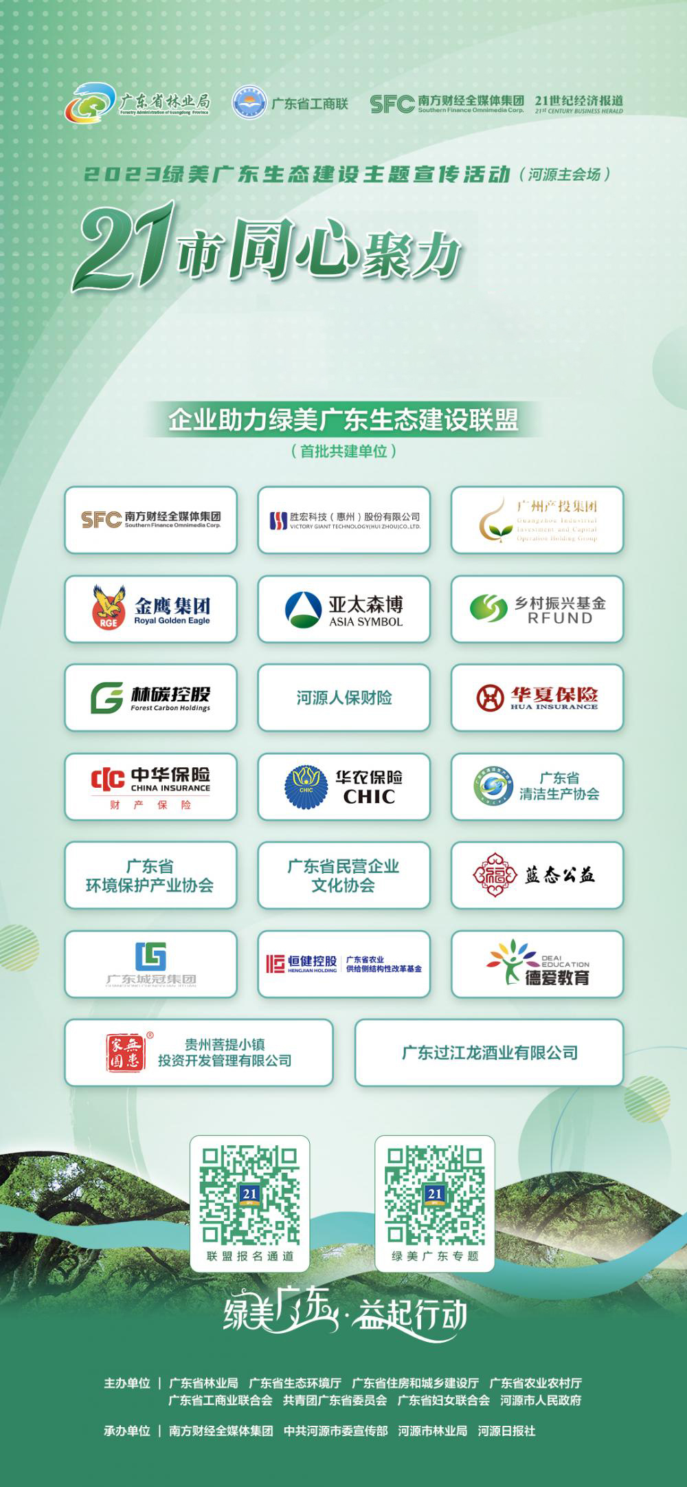 活动期间,由南方财经全媒体集团发起和组织的“企业助力绿美广东生态建设联盟”正式启动成立(以下简称“联盟”)。JDB电子游戏科技作为首批共建单位,与相关领导、其他金融机构、企业代表、媒体等共同参与启动仪式,并向社会各界发出号召,通过联盟平台,以多种方式积极投身“绿美广东”生态建设当中。