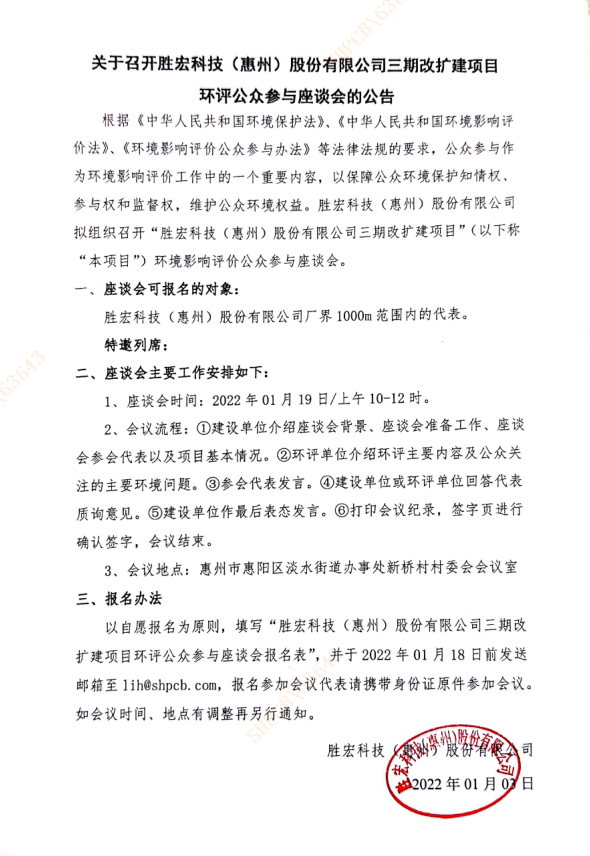 关于召开JDB电子游戏(集团)智能科技股份有限公司三期改扩建项目环评公众参与座谈会的公告